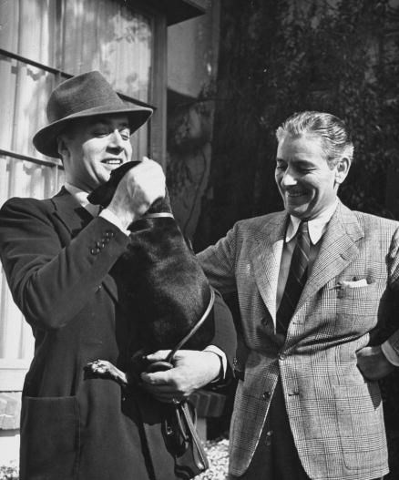 French Charles Boyer and English Ronald Colman cuddle the little German