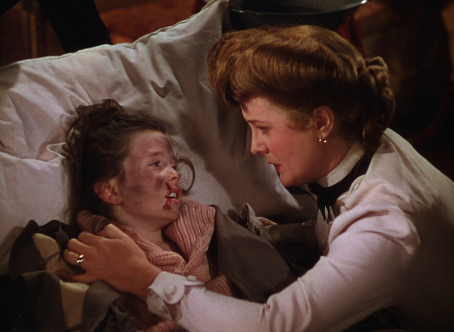 O’Brien as Tootie telling lies to Mary Astor, playing her mother-saying that John Truitt tried to kill her on Halloween.