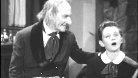 Fredric March as Ebenezer Scrooge and Christopher Cook as Tiny Tim in a 1954 TV adaptation of “A Christmas Carol”