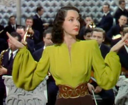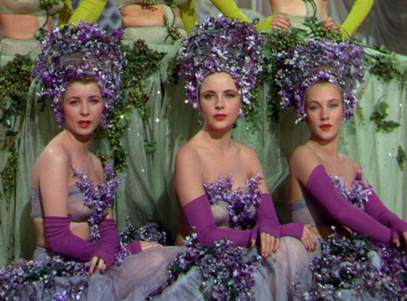 For some reason, this 1943 Technicolor musical seems to explode color than any other 1940s MGM musical. Maybe it’s because of the costume color selections that were picked. We start with a musical number of chorus girls in Ziegfeld Girl-like blue and purple costumes. Then there is Lucille Ball with her vibrant red hair (a color MGM stylist Sydney Guilaroff called Tango Red). Of course, Red Skelton also has a shock of red hair. And then there’s Virginia O’Brien’s unforgettable chartreuse blouse. Visually, this film is off-the-charts gorgeous!