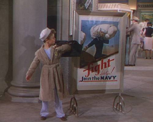 The story itself isn’t anything new when it comes to plots: Sailors on leave who find love amidst music and dancing. But it is colorful and has the added bonus of being set in Hollywood and on the MGM film lot, one of those “movies about movies.” That’s because Kathryn Grayson’s character works as a film extra at MGM and the sailors run around the MGM studio lot trying to find Jose Iturbi. We also get to see the Hollywood Bowl, where Jose Iturbi and 20 children perform on the piano in a magnificent musical sequence. Gene Kelly has some impressive dance numbers; including the novelty number with Jerry the Mouse (Tom and Jerry would later appear in an MGM film in Dangerous When Wet). Frank Sinatra croons beautifully, though he looks a little uncertain about his dance steps, and is still in his “awe shucks” sweet phase of his film career.