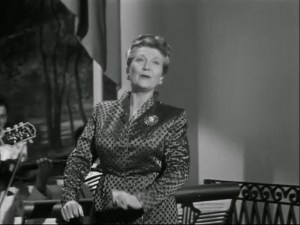 But while Adele Jergens and Marilyn Monroe carry the movie and are wonderful, the actress playing Rand Brooks’ mother steals the show: character actress Nana Bryant. Bryant is a wealthy society mother. The audience predicts that Bryant will be a snooty, society lady, but instead, she ends up letting her hair down and welcoming Jergens and Monroe with open arms. She even accepts them by putting her own reputation at risk. Bryant even talk/sings a song!