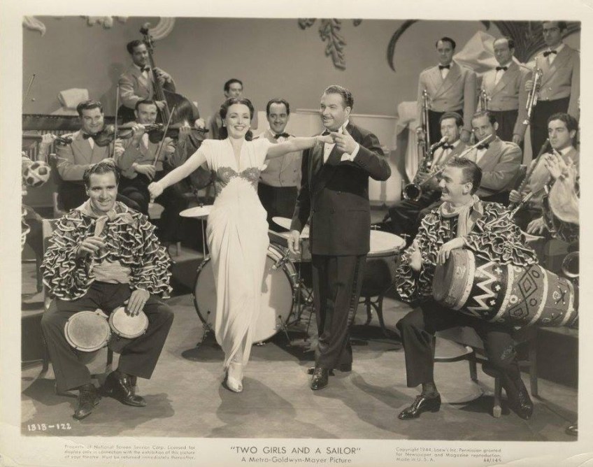 Lina Romay and Xavier Cugat with his orchestra performing “Rhumba Rhumba” in “Two Girls and a Sailor”