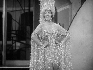 A zeppelin guest dressed as “water,” costume designed by Gilbert Adrian. This costume is similar to Judy Garland’s in the “You Stepped Out of a Dream” number in “Ziegfield Girl,” also designed by Gilbert Adrian.