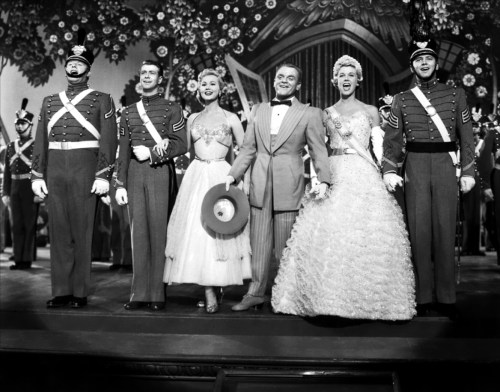 Doris Day doesn’t appear until 45 minutes into the movie. And of course, while Jan and Tom are singing and walking along Flirtation Walk, they fall in love. She wants to quit her career, and he wants to leave West Point, and it seems like all of Bixby’s plans will fall apart…
