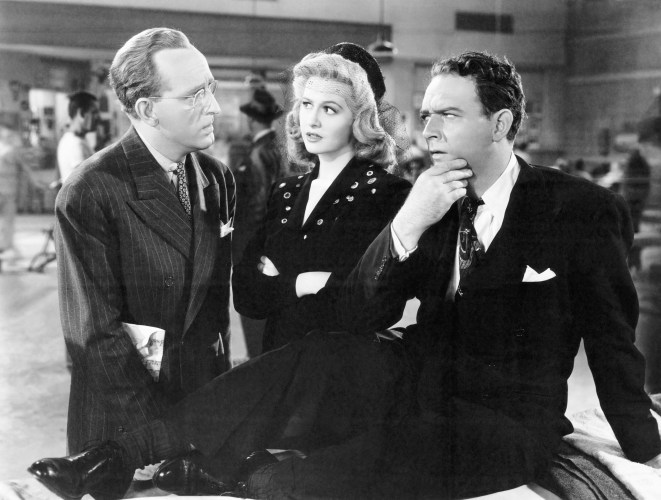 Kay Kyser, Marilyn Maxwell, and William Gargan in “Swing Fever”