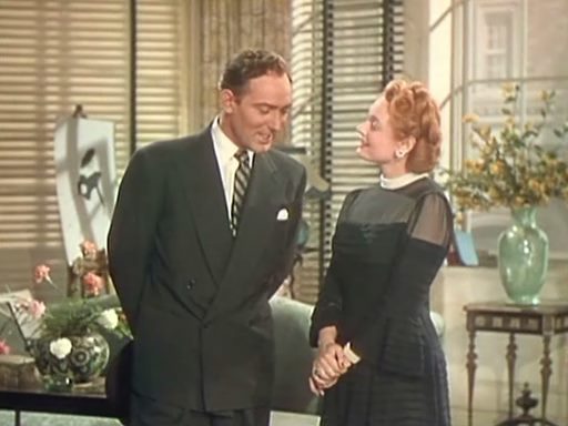 The uncomplicated story is told against gorgeous Technicolor cinematography. We have the chance to see Anna Neagle’s vibrant red hair and costumes in light blues, pink hat flowers and yellow suits. Britain’s top fashion designers are showcased in a dream-like fashion show as Neagle explains to Wilding how introducing new fashion lines work.