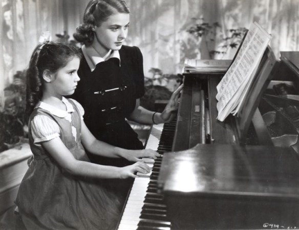 In the film “Intermezzo, A Love Story,” Leslie Howard is a concert violinist, Holger. When Holger returns from a tour, he meets his daughter’s piano teacher Anita, played by Ingrid Bergman. The two fall in love, and Holger leaves his family to go on tour with Anita has his accompanist. When the tour ends, the two live blissfully in Europe – being happy at the expense of others.