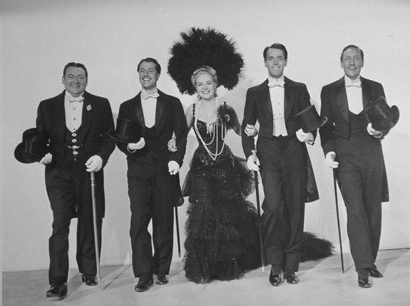 The cast of Lillian Russell: Edward Arnold, Don Ameche, Alice Faye, Henry Fonda and Warren William.