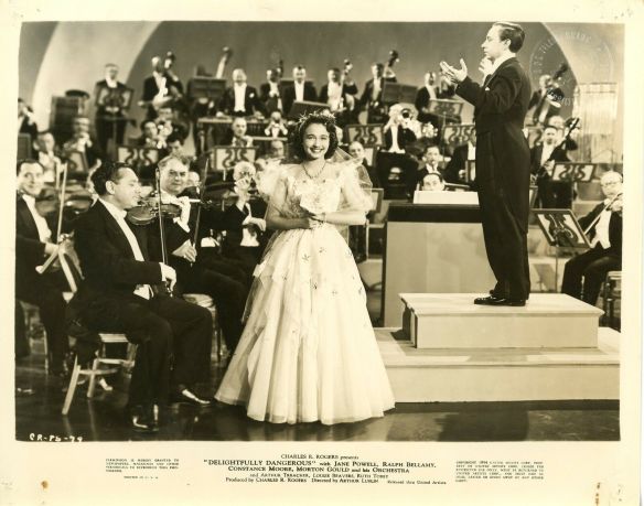 Jane Powell performing with composer Morton Gould during a dream sequence in “Delightfully Dangerous.”