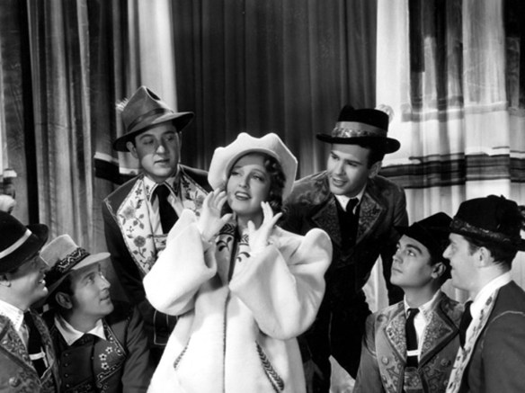 On the whole, the musical portion is fairly standard of most MGM and MacDonald films. However, do watch for the incredibly strange finale. Frank Morgan’s character says he wants it to be an impressionistic number, and he isn’t fooling. All the performers from musicians to singers and dancers have these strange (almost terrifying) masks – and the mouths even move for singing. One of the most strange MGM numbers of this era.
