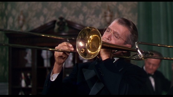 But the added bonus is that many of the characters in the Glenn Miller story are real. Clarinet player Willie Schwartz is mentioned, who was the musician that led Miller’s characteristic sound. Harry Morgan’s character of Chummy is John “Chummy” MacGregor, the piano player for Miller’s orchestra from 1936 to 1942. We also see real-life figures like drummers Gene Krupa and Cozy Cole, Louis Armstrong, and bandleader Ben Pollack.