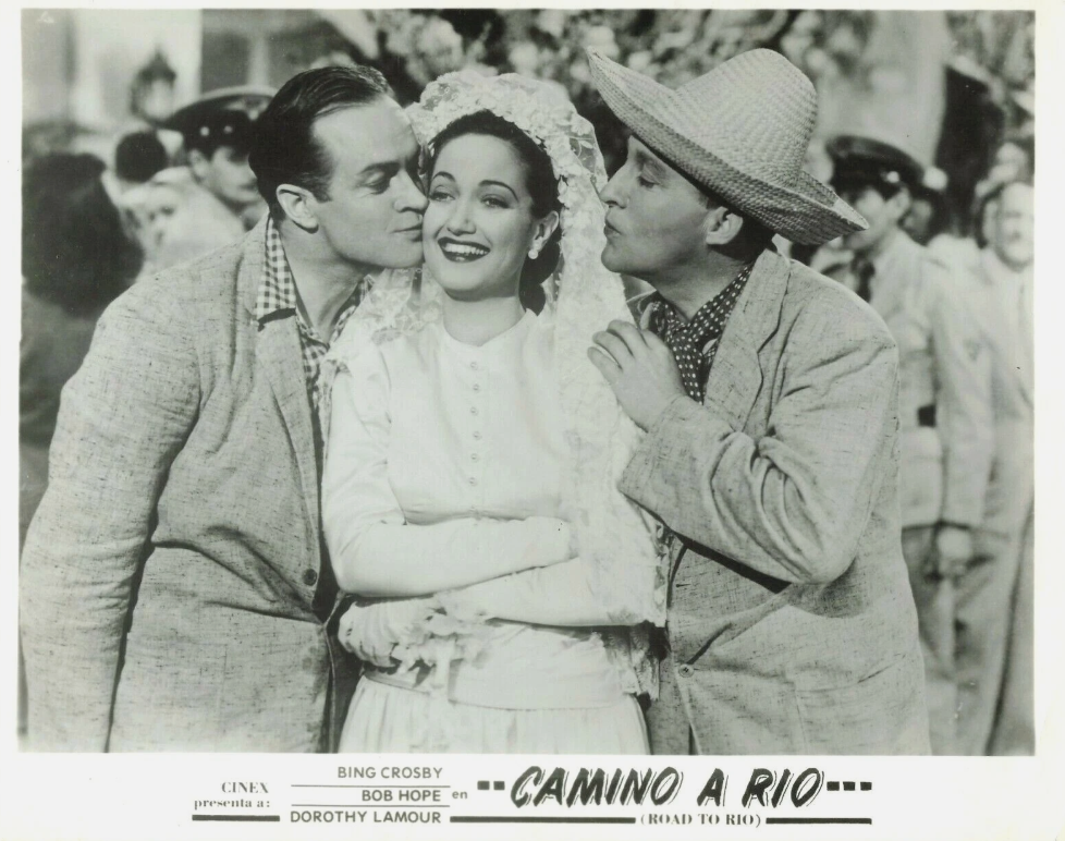 In the film, Hope and Crosby return this time as Scat and Hot Lips but are still playing down-on-their-luck vaudevillian performers. This time, the film starts with their footprints traveling across the United States and then getting chased out of each area after Scat woos the local women. At one stop, the pair burn down the entire carnival with their performance. Fleeing the scene of the fire, they stowaway on a ship bound for Rio de Janeiro, Brazil, where they meet wealthy Lucia Maria de Andrade (Lamour). Lucia’s finances and future nuptials are being controlled by her nefarious guardian, Catherine Vail (Sondergaard), and her henchmen (Faylen). The pair try to help her out, while also performing in a band.