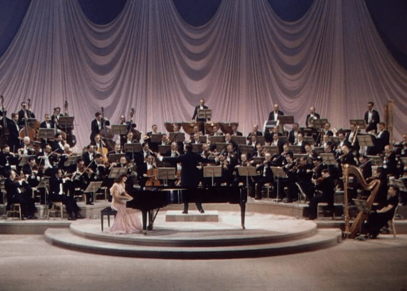 Bosley Crowther equally thumbs his nose at the film noting that it what happened after the finale concert would have been more interesting. He also mentions that filmgoers may tire of Rachmaninoff’s Second Piano Concerto, because it had also been recently highlighted in HOLIDAY IN MEXICO and BRIEF ENCOUNTER that same year.
