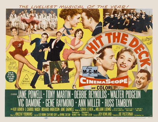“Hit the Deck” is fun and star-studded but it’s not the quality that she hoped for. The cast includes some of MGM’s many musical stars, Jane Powell, Tony Martin, Debbie Reynolds, Ann Miller, Russ Tamblyn, Walter Pidgeon, Vic Damone and Gene Raymond.