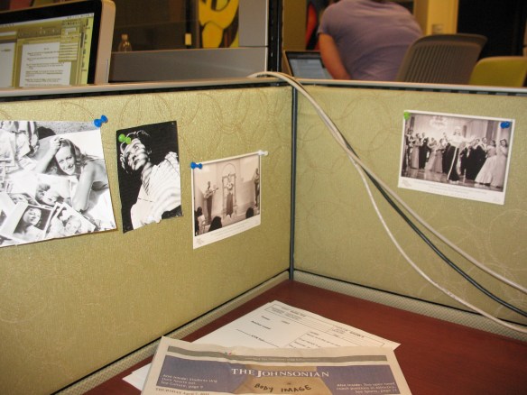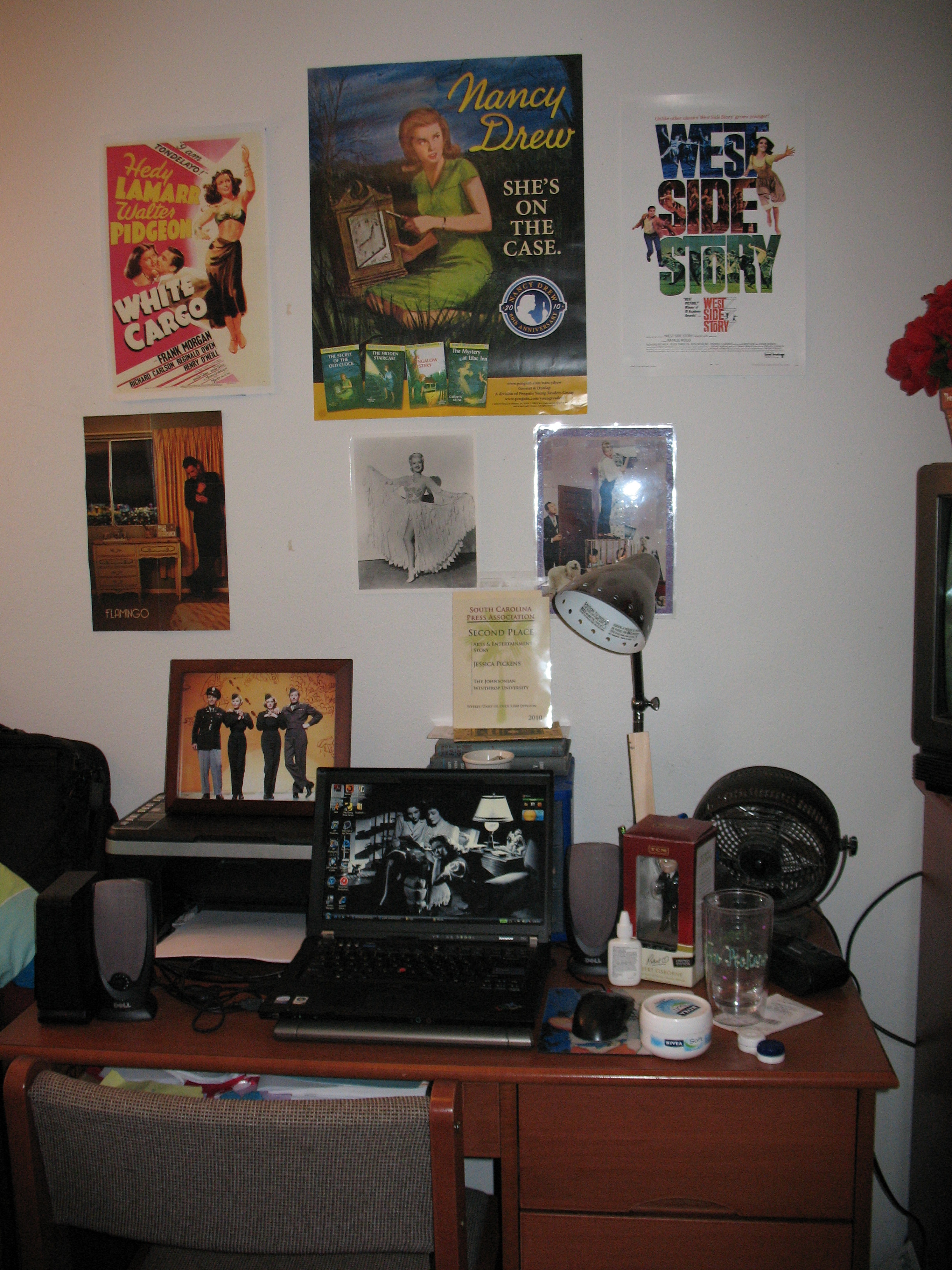 As I finish up my last week of college classes forever, I wanted to show how classic film helped to decorate my college dorm room and my desk at our student newspaper office.