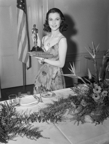 Vivien Leigh proudly holds her Best Actress Oscar on March 2. 1940. She was recognized for her portrayal of Scarlett O’Hara in Gone With the Wind.