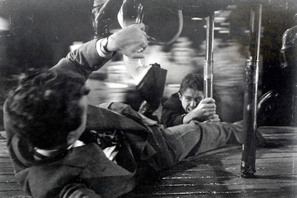 -Guy Madison as the sailor Bill and Jane meet at the bowling alley