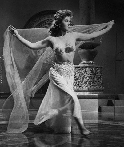 Hayward shows off her figure as she dances in the John Wayne film “The Conqueror” (1954).