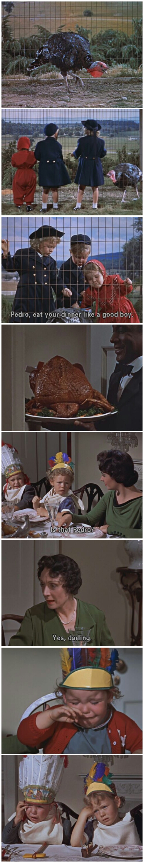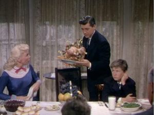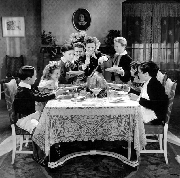 Claude Rains and Edward Arnold carve turkeys