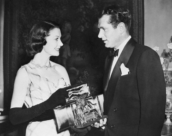Vivien Leigh proudly holds her Best Actress Oscar on March 2. 1940. She was recognized for her portrayal of Scarlett O’Hara in Gone With the Wind.
