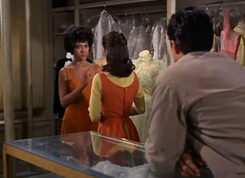 Who can forget the purple dress Anita wears to the dance and the white dress Maria feels makes her look like a baby? But my favorite three are the yellow dress Maria wears while singing “I Feel Pretty,” the blue dress Maria wears as she waits for Tony after the rumble and the orange dress we get a brief glimpse of Anita wearing in the dress shop when she catches Maria and Tony together.