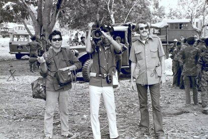Shooting a story in Cambodia, 1973. Photo Courtesy of Haney Howell