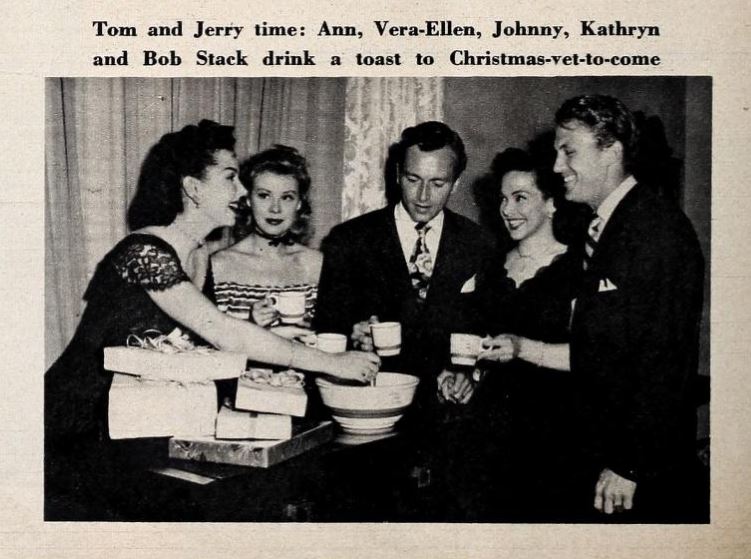 Ann Miller, Vera-Ellen, Johnny Johnston, Kathryn Grayson and Robert Stack at Miller’s Christmas party.